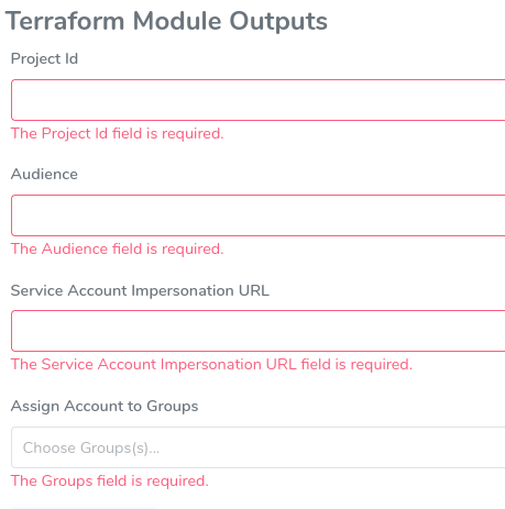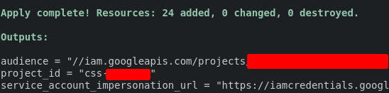 After Terraform has applied, there are 3 module outputs that you must transfer to the CSS Console: