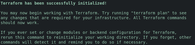 <figure><img src="https://905555942-files.gitbook.io/~/files/v0/b/gitbook-x-prod.appspot.com/o/spaces%2FlGcQw8I2CHyi1loKBlfi%2Fuploads%2FcCbLaoq25l5PIF4AdDgy%2Fimage.png?alt=media&#x26;token=859d0c0a-d0f6-462b-adda-e91906ce5801" alt=""><figcaption><p>Terraform Init</p></figcaption></figure>
