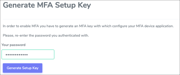 2. Enter your existing password and click `Generate Setup Key`<br>