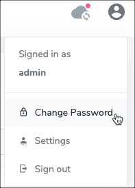To change your own password, you will select the user icon ![User icon](https://905555942-files.gitbook.io/~/files/v0/b/gitbook-x-prod.appspot.com/o/spaces%2FlGcQw8I2CHyi1loKBlfi%2Fuploads%2F137qjkzflIRDuHB0Vn1U%2Fuser-icon.png?alt=media) in the upper right corner of the console and select `Change Password` from the menu.
