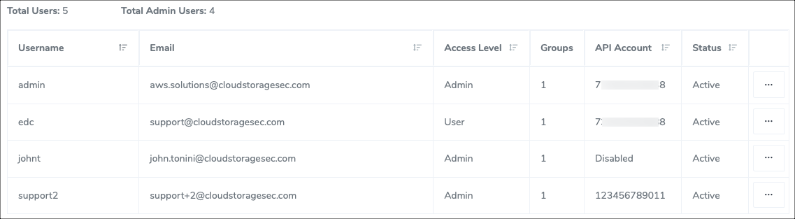 Managing users involves creating, modifying, deleting or activating/deactivating their accounts. At the time of creation you will also assign them one or multiple [groups](https://help.cloudstoragesec.com/console-overview/access-management/group-mgmt) to belong to. You can change the group assignment later as well.