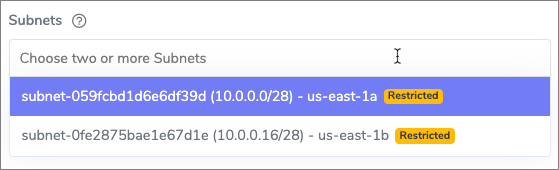 You'll notice a `Public` or `Restricted` associated with each Subnet. This is an indicator of whether or not the Subnet is outbound routable to the internet. Minimally, the agent task must be able to reach the AWS ECR to pull new Task images and to be able to pull AV signature updates. Two validations are performed for this check. First, we check to see if the NACL associated with the Subnet(s) has outbound open for 0.0.0.0/0. Secondly, we check to see if there is a custom Route Table in place and verify it is routed to an internet gateway.