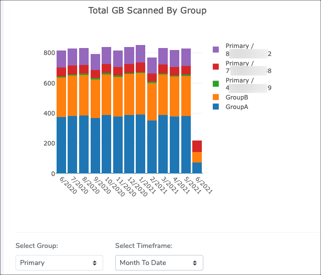 <figure><img src="https://905555942-files.gitbook.io/~/files/v0/b/gitbook-x-prod.appspot.com/o/spaces%2FlGcQw8I2CHyi1loKBlfi%2Fuploads%2F6F2iqkL5VLu3lyys7abI%2Fusage-group-chart.png?alt=media" alt=""><figcaption><p>Total GB Scanned By Group</p></figcaption></figure>