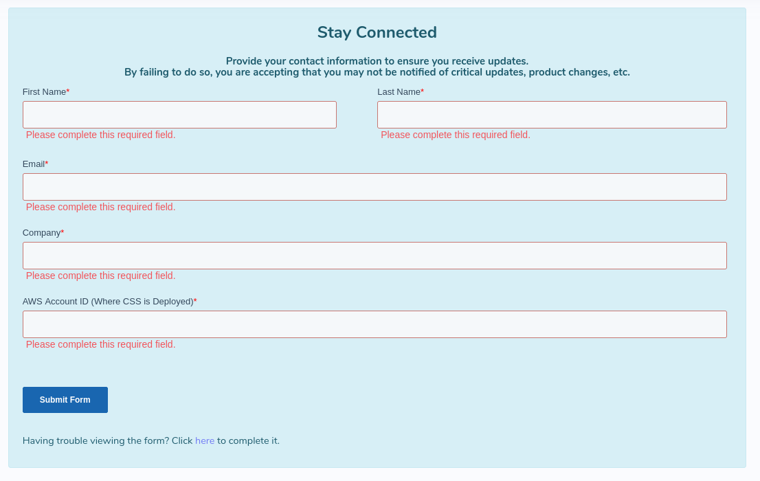 The Stay Connected page will allow us to contact you when there are updates or changes to the product.