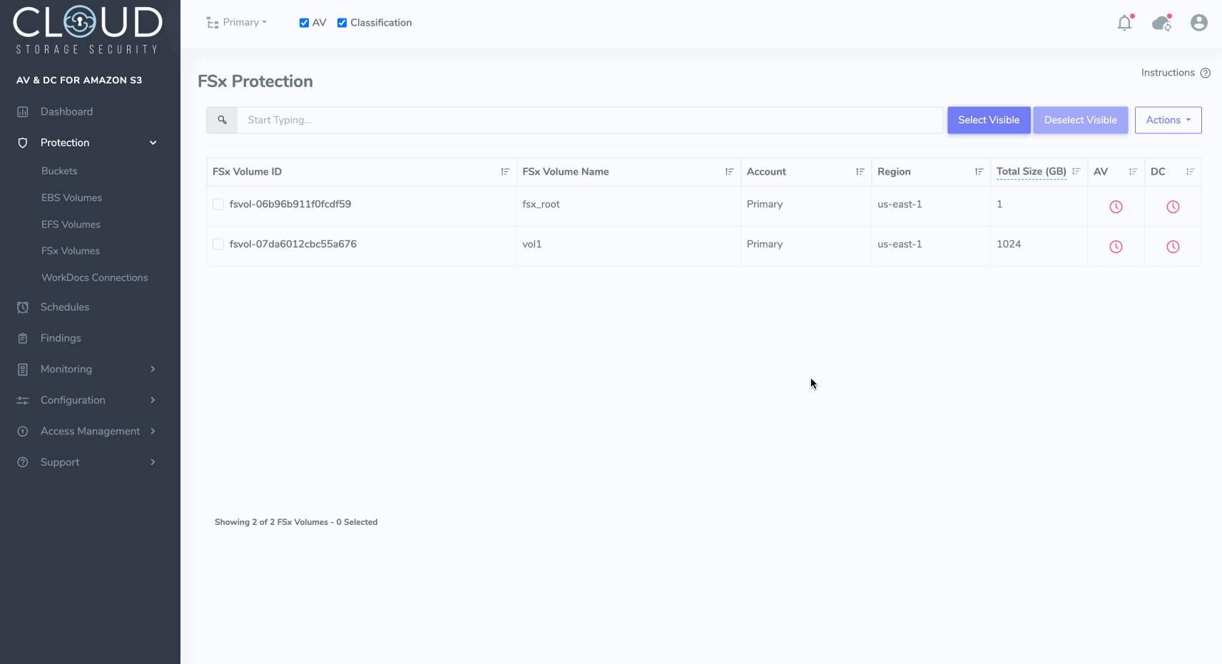 * We now support schedule-based virus scanning and data classification for [EBS volumes](https://help.cloudstoragesec.com/console-overview/protection/aws/ebs-volumes) and [EFS volumes](https://help.cloudstoragesec.com/console-overview/protection/aws/efs-volumes)