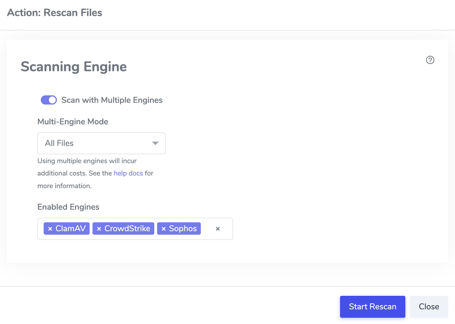 * When rescanning files you can now select the engine to rescan with and perform the rescan with multiple engines.