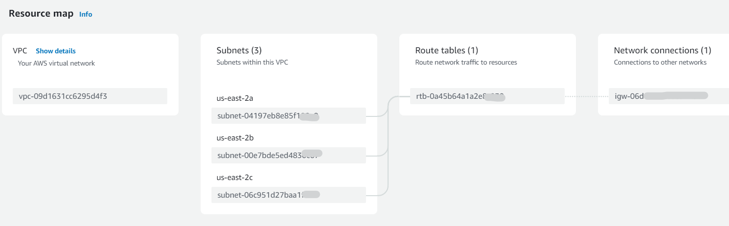 <figure><img src="https://905555942-files.gitbook.io/~/files/v0/b/gitbook-x-prod.appspot.com/o/spaces%2FlGcQw8I2CHyi1loKBlfi%2Fuploads%2FFvOALxPb2CY8e4fZtW96%2Fimage.png?alt=media&#x26;token=64ecded0-5eb0-4447-a3ab-c49305e39ab7" alt=""><figcaption><p><strong>This the Default Public Deployment from AWS VPC</strong><br>You can take an easier a look at the subnets involved and Network connections. Check that the Security Group has outbound access allowed as well</p></figcaption></figure>